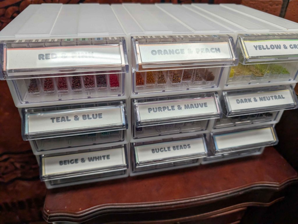 Update 2025: I actually use the ARTDOT storage system now. They’re designed for diamond painting, but work great for beads. And you can fit SO many beads in these. Plus the drawers are modular and you can expand easily.