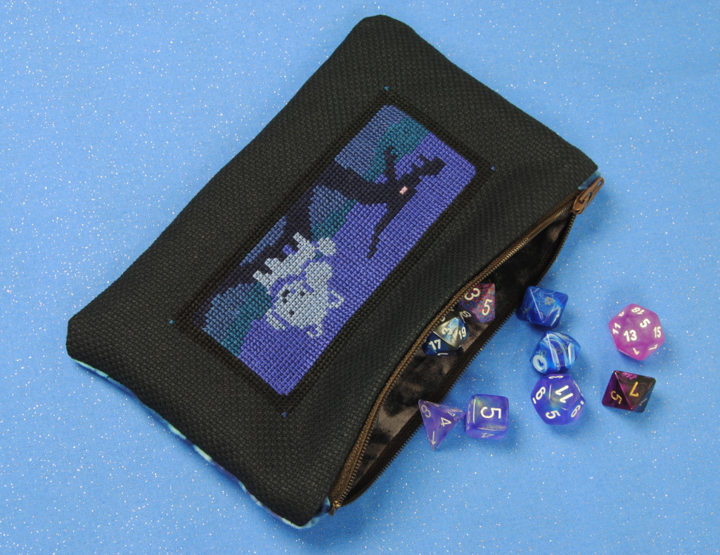 Another bag I made out of cross stitch is this pencil pouch that featured in my UNDERTALE cross stitch book. And guess what — It was stitched together entirely by hand! Yes, even the zipper. You don’t NEED a machine to follow sewing tutorials. Especially when using aida — you can just use the aida grid as a guide and stitch it like you would backstitching!
